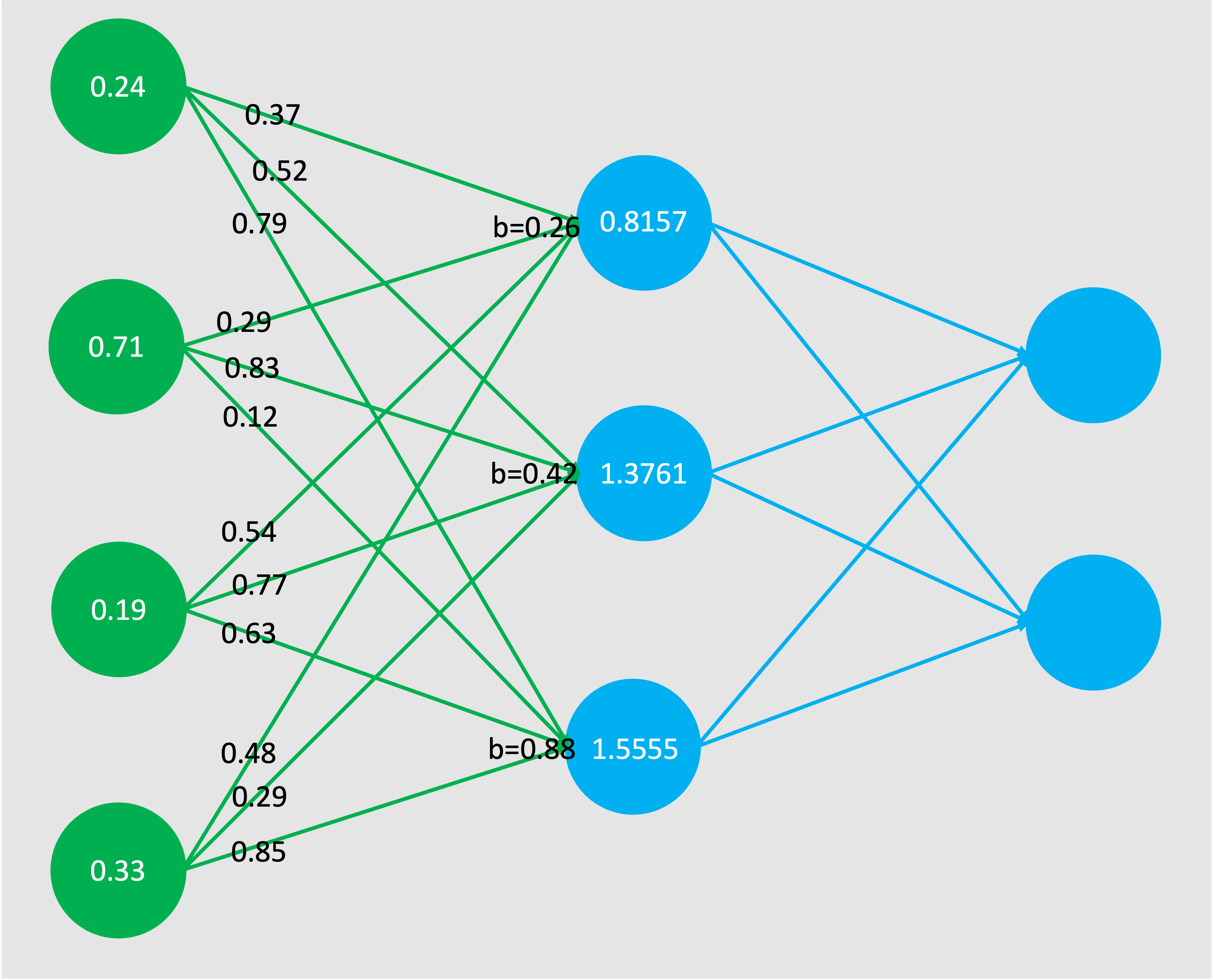 図2 ニューラルネットワーク(図1に計算結果を当てはめたもの)